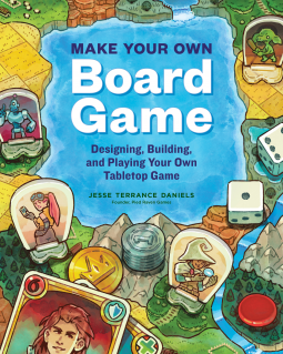 Jesse Terrance Daniels has put together visually appealing book in (Amazon affiliate link) Make Your Own Board Game, available February 2022. Don’t let the cover dissuade you. The inside has cute illustrations and a layout which adds to the book, throwing in decipherable pictures of well-known Euro games in the process.